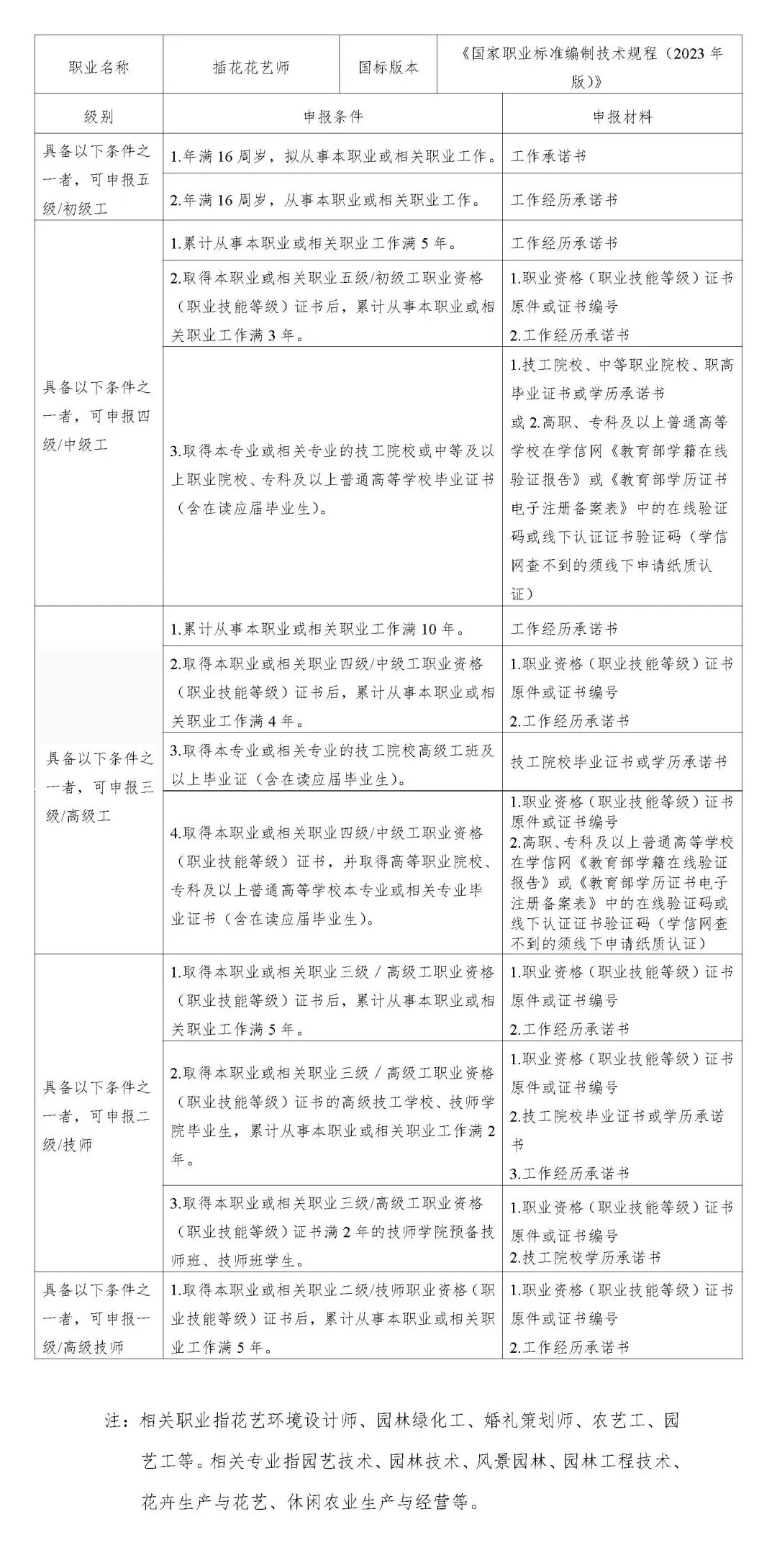 请报名考生仔细阅读以下插花花艺师各等级申报条件,满足条件之一即可报名相应等级考试。