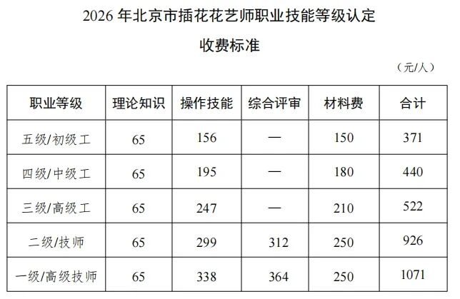 中国插花花艺协会2026年度国家插花花艺师职业技能等级认定安排如下: